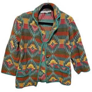 BEDFORD FAIR Boho Aztec Southwestern Tribal Tapestry Blazer Jacket - Size MP
