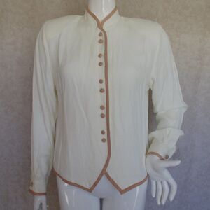 BEDFORD FAIR Shirt-jacket, L, Off-white/Camel trim, Buttons, Long sleeve