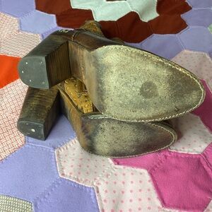 Leather imported Bed|Stu organic, chrome free, vegetable tanned leather upper, handmade by Real People High heeled booties with shaped perforated upper Goodyear welted leather sole, 5.5 inch shaft height, 3.5 inch stacked leather heel, made in Leon Mexico.