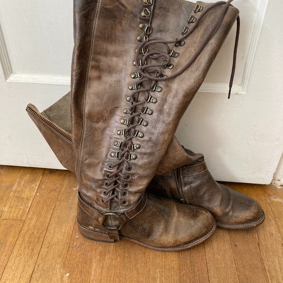 Gorgeous and gently used riding boot. Brown/grey with laces and inside thigh zipper. Super comfortable.