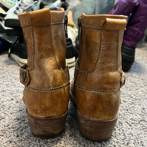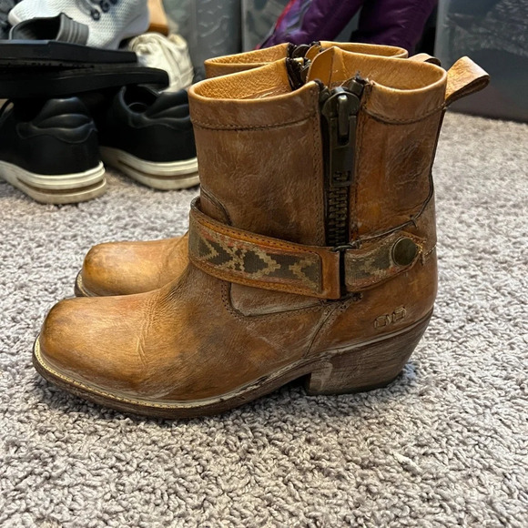 EUC BED|STU women’s cobbler bootie size 6. These booties are gorgeous! Organic tanner leather, bootie heel, colorful strap across the top. I love all the neutral colors on the top strap across! Inner and outer ankle zips!