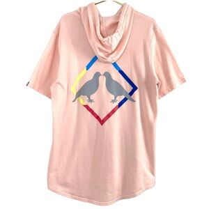 Bedstuyfly Birds Logo Short Sleeve Sweatshirt Hoodie in Pink Style GM29Y014