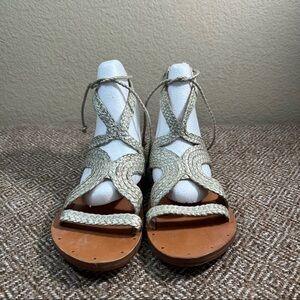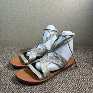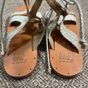 BEEK BY TWO BIRDS Cuckoo Ankle Tie Sandal BRAIDED LEATHER Womens SZ 7 Beach EUC