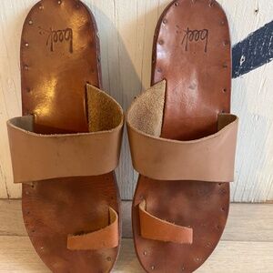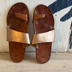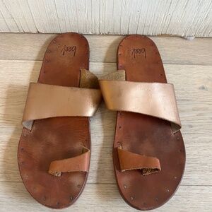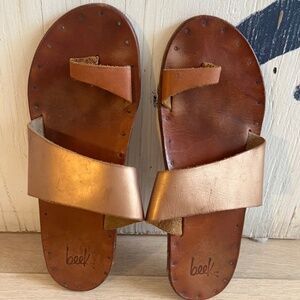 BEEK FINCH LEATHER TOE RING SANDAL SLIDE SZ:10 in Tan/gold