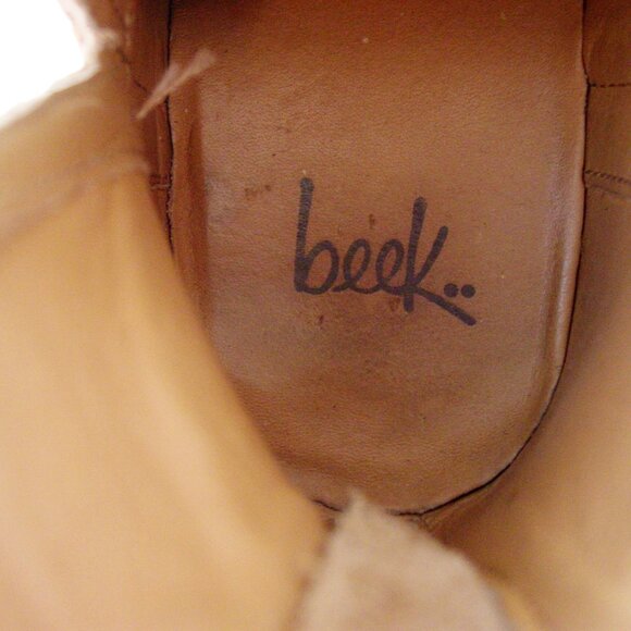 BEEK Falcon $375 Tan Suede Heel Zip Booties Ankle Boots 9 - Made in MEXICO