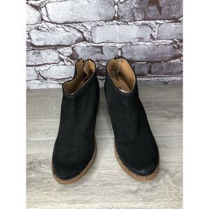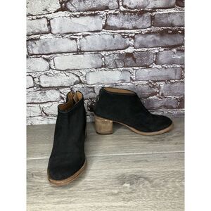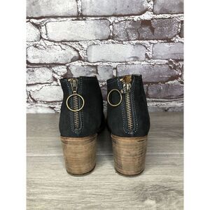 BEEK Falcon Black Suede Leather Back Zip Stacked Heel Booties Women’s 7M US/38EU