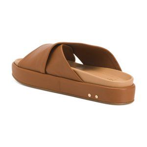 Wide straps of supple leather crisscross this vibrant slide sandal set on a molded footbed and subtle platform sole with signature nailhead accents. Leather upper and lining/rubber sole