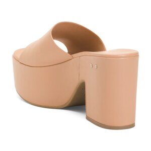 leather lining, lightly cushioned footbed, platform heel, gold tone stud details