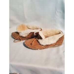 Step up your shoe game with these stylish BEEK Penguin Genuine Shearling Booties in size 9. These closed toe lace-up boots feature a sand color suede upper material with a sheepskin lining. The flat heel style makes them perfect for casual occasions, while the rubber outsole material provides durability and traction.