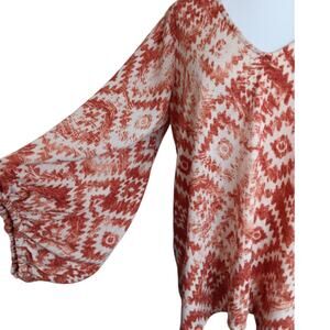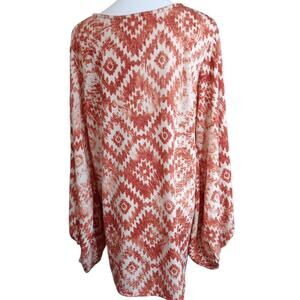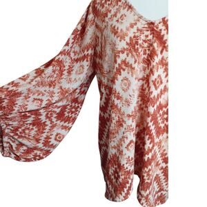BEESON RIVER Sweater Top Plus 2X Light V-Neck Southwestern Aztec Rust Orange