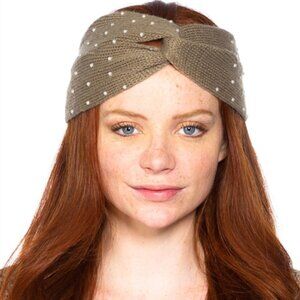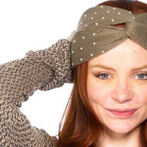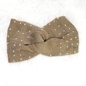 Add a little extra charm to your fall wardrobe while keeping your ears warm with this fabulous BEIGE knitted headband with adorable white stud details!
