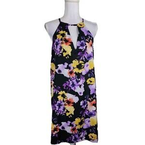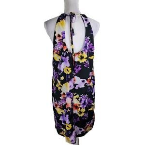 BEIGE by ECI ~Woman Size L~Black/Multi Floral Print Shift Halter Dress Lined NWT