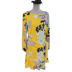 BEIGE by ECI Yellow floral dress w/bell sleeves sz Large