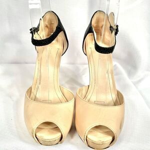 BEIGE & BLACK BCB GENERATION PLATFORM ANKLE STRAP PEEP TOE 5” HEELS 1” PLATFORM SIZE 7B