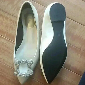 BEIGE WOMENS SATIN SHOES. SIZE 37 = 7 LIKE NEW