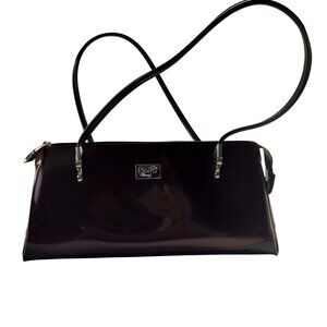 BEIJO HANDBAG Classic London Paris New York Brown Patent Leather Shoulder Bag