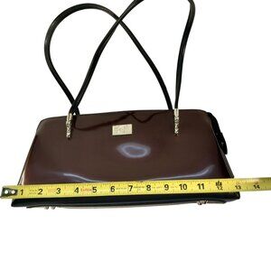 BEIJO HANDBAG Classic London Paris New York Brown Patent Leather Shoulder Bag Y2K Corpcore Classiccore
