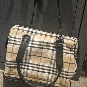 Chic plaid design with sturdy black handles. Ideal for travel. Iconic Beis mini weekender with laptop compartment, shoe compartment, zip pockets. New without tags, never used. Bought for a trip that was canceled. Would make a beautiful gift. Pretty much perfect, no rips, tears, stains, cracking, smoke free home.