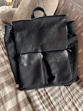 BEIS backpack perfect for travel (or anytime use!); has the option to slip over suitcase and is expandable. Minor wear shown where magnetic closures are on pockets but otherwise like new!