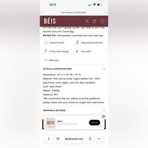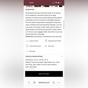 Sleek and versatile, this BEIS Weekender travel bag is perfect for any journey. Designed for style and functionality.