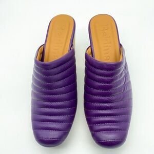 Leather clogs in mulberry.