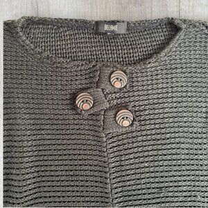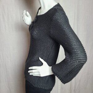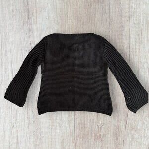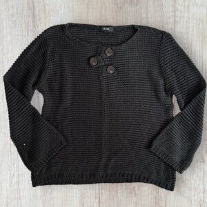 BELAMIE Black Lagenlook Crew Neck Sweater Decorative Wood Buttons Boho Women's L