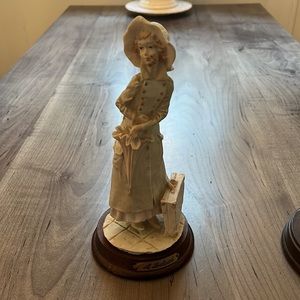 Picturing these BELCARI ITALIAN FIGURINEs! Two ladies on wooden pedestals. Pucci 1984. EUC . Price is for both!