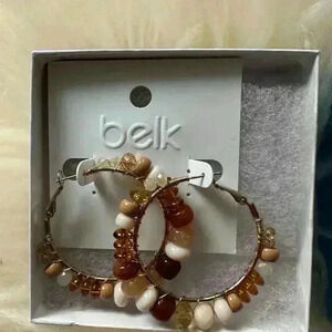 BELK Beaded Hoop Earrings - Earth Tone Beads, Gold-Tone Hoops