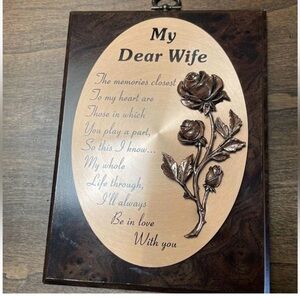 BELL TREE INC. MY DEAR WIFE PLAQUE - BROWN/GOLD (NEW WITH TAGS)