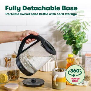 BELLA 1.7 Liter Glass Electric Kettle, Quickly Boil 7 Cups of Water in 6-7 Min.
