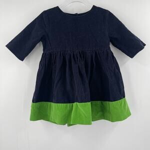 BELLA BLISS Dress Size 3 Boutique Corduroy Green Navy Toddler Girl Prep Holiday Winter, Formal, Event