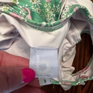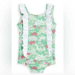 Absolutely stunning Bella Bliss bathing suit in a green floral with precious white ruffles. Great preowned condition, has hardly been worn!