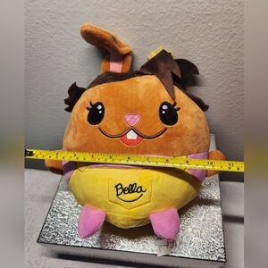 Adorable Bella bunny plush toy with brown and yellow colors. Features cute pink accents and a charming smile.