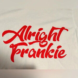 Unisex Barstool Sports tee. Classic, old school Dave Portnoy’s pizza review. Screened on the front “Alright Frankie”, in red. On the upper back has the Barstool, stool logo. Short sleeves. U/crew neck. Brand new. Never worn. NWOT.
