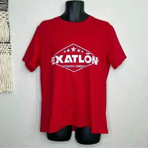 bella + canvas, exatlon eu, red graphic tee, men's xl shirt, breathable cotton, athletic casual wear, new without tags