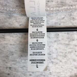 Bella + Canvas. Assembled in Nicaragua of US components. 50% Polyester, 25% Cotton, 25% Rayon.