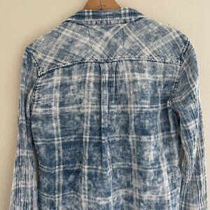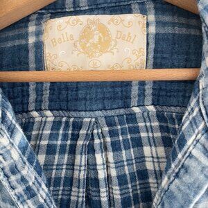 BELLA DAHL Blue/White Plaid Cotton Blouse: Excellent Pre-Loved Condition; Medium