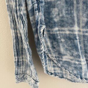Blue & White Plaid 100% Cotton Blouse with High/Low Hem; Machine Washable.