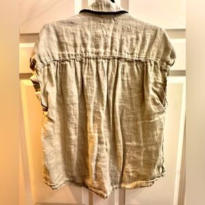 BELLA DAHL EUC Sz L 100% Linen Flowy Pocket Button Down Shirt, Tan