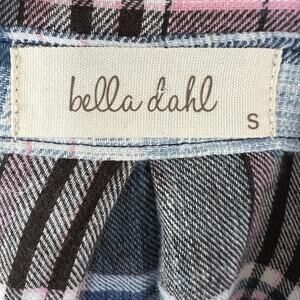 BELLA DAHL Linen Blend Pink Gray Button-Down Plaid Top Shirt Raw Hem Size S