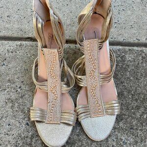 BELLA LUMA Metallic Gold Rhinestone Platform Heels - Size 11