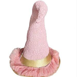 BELLA LUX Halloween Lace Tulle Pink Witch Hat Shabby Wicked Gold Prop Decor