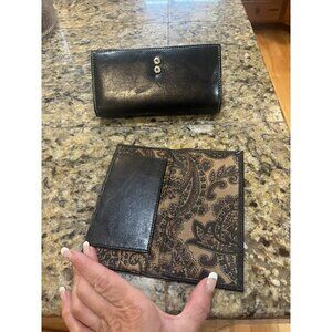 BELLA ROSE BLACK brown TRIFOLD WALLET checkbook