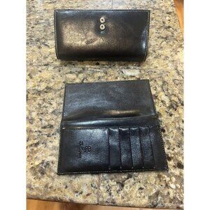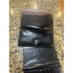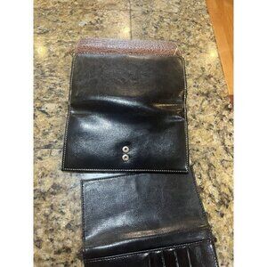 BELLA ROSE BLACK brown leather TRIFOLD WALLET checkbook