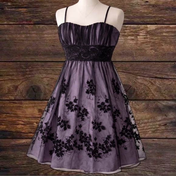 Vintage Soft purple chiffon dress with black lace and floral overlay, literally something Bella Swan would’ve worn in Twilight. Moody, romantic, and whimsy-goth with a classic Y2K silhouette 🕯️🖤