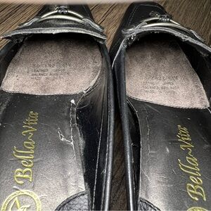 BELLA VITA Size 6.5M Black Leather Open Back Mule Slip On. Buckle Tassle Detail