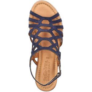BELLA VITA Zip-Italy Navy Suede Leather Wedge Sandals Size 7.5M