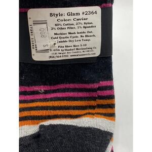 B.ELLA Women's Black Caviar Knit Cotton-Blend Striped Glam Crew Socks SZ OS