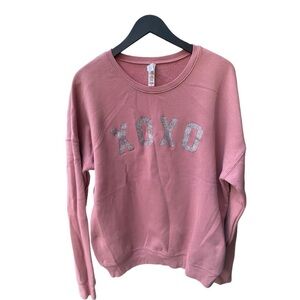 Cozy pink sweatshirt with XOXO design. Perfect for casual wear.