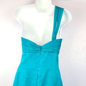 Gorgeous brand new one shoulder turquoise formal dress Short in length with zipper on back.